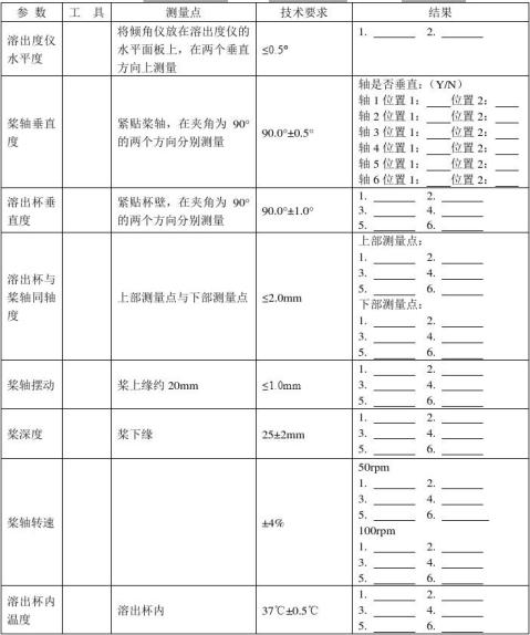 六、溶出度儀機(jī)械驗證參數(shù)列表