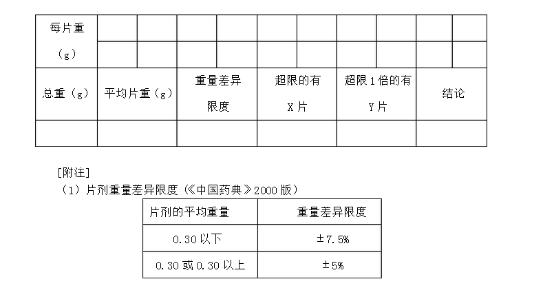 取藥片20片,精密稱重總重量,求得平均片重后,再分別精密稱定各片的重量,每片重是與平均片重相比較,超出重量差異限度的藥片不得多于2片,并不得有1片超出重量差異限度的1倍。